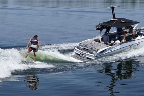This engine is optimized for watersports with a specialized transmission and engine calibration. It is tuned to get heavy boats loaded with ballast and people out of the water quickly and keep them on plane at low tow speeds, down to 8 mph. The class-leading torque of the T8200 enhances control and helps generate a surfable wake.